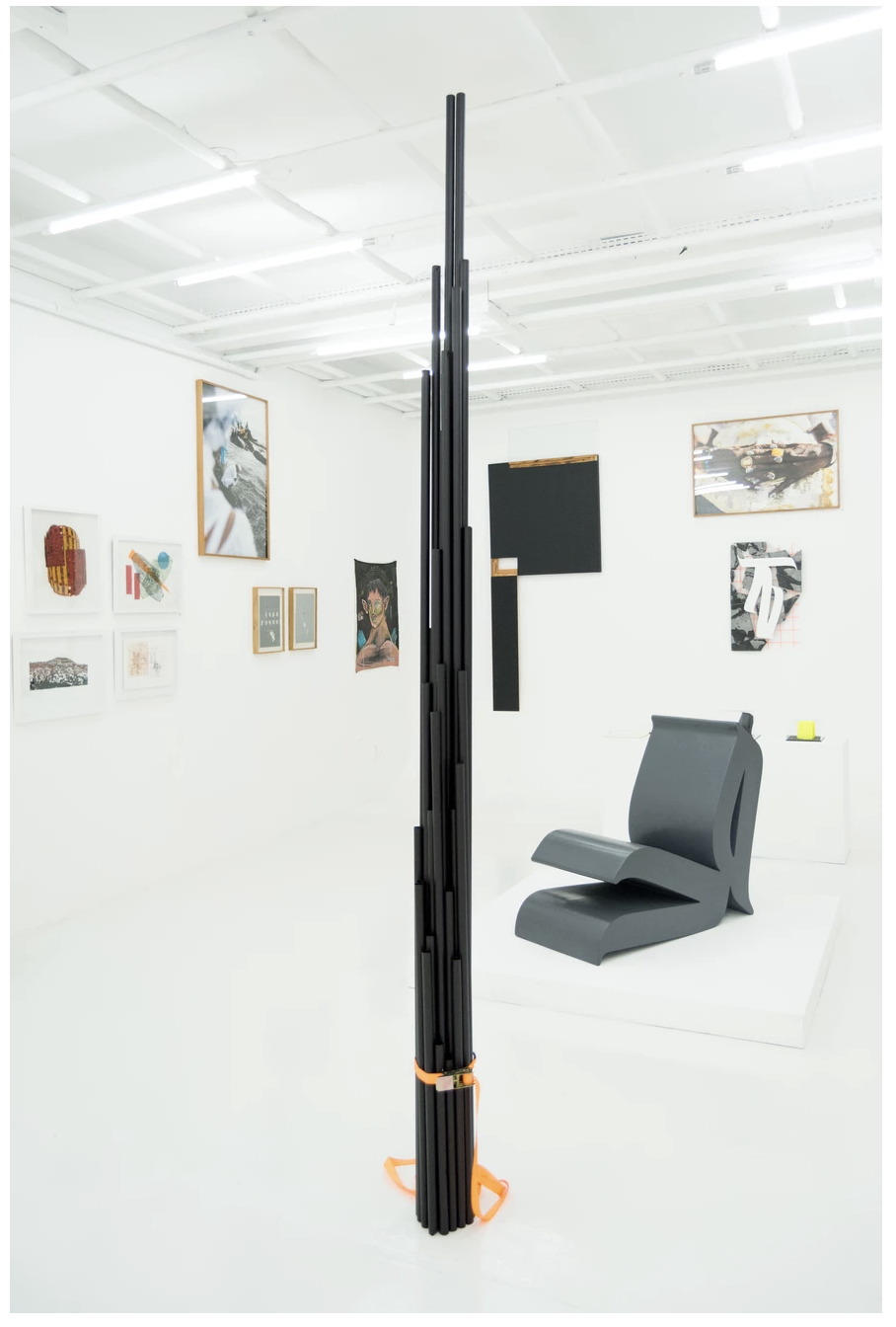 A abolição do juízo qualitativo entre saber construtivo e projeto conceitual também ganha força na obra tridimensional de H4wnee. Seu trabalho, que aglutina em superfícies portáteis um volume inversamente