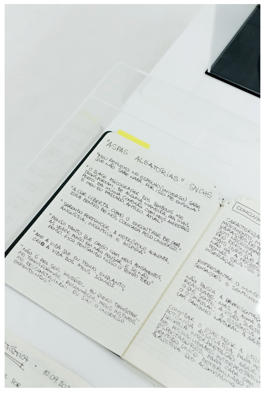 A reflexão não é um privilégio da consciência. O corpo sofre do visto, do tocado e do movido. A necessidade de recuperação da unidade entre os binômios arte/trabalho, homo faber/homo sapiens, utilidade/contemplação, arte popular (artesanato)/arte erudita (belas artes) é também a necessidade de criação de interseções mais compreensivas no amplo campo do conhecimento e da expressão humana. Ao salientarem o caráter reflexivo do corpo e das mãos, os artistas aqui reunidos, cada um à sua maneira e com diversos pontos em comum, encaram com veemência a intricada tarefa de produção de sentido para uma realidade cada vez mais complexa. A superação dessas dicotomias ganha fôlego quando uma produção artística interdisciplinar dessa natureza encontra abrigo em um espaço como o da Nós Galeria, jovem ambiente de trocas e de valorização da diversidade. Este encontro age no sentido da conservação dos saberes humanos numa unidade superior, talvez a unidade da arte em si, que pode encontrar finalmente paz em sua renovada função de síntese superadora.