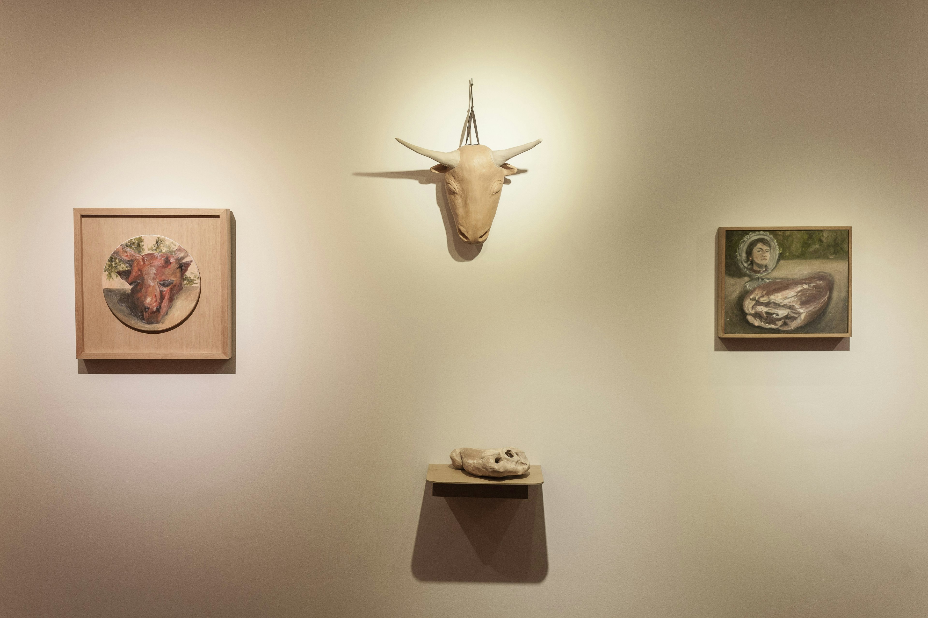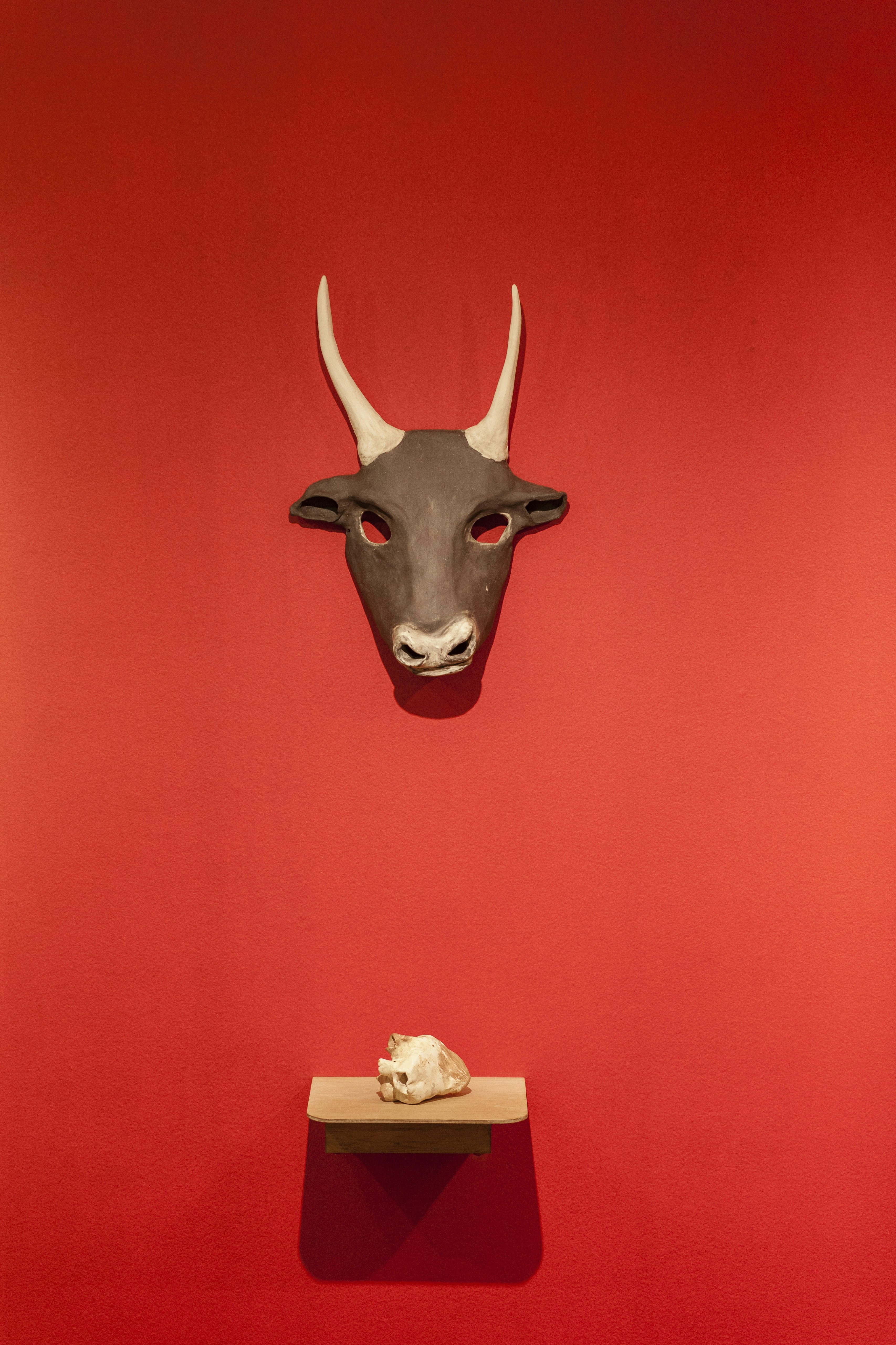 A trajetória de criação desse conjunto parte de uma pesquisa iniciada em 2011 sobre o mito grego do Minotauro, que carrega consigo uma série de elucubrações sobre a simbologia do feminino, a figura de Vênus e o retrato – a imagem de si com uma máscara e a perda da razão para o domínio do instinto. Perpassando pelas temáticas da sexualidade, da intuição e do impulso, Danielle trabalha sobre a ideia de releitura versus autoria – a adaptação da lenda mitológica/primitiva aos modos de representação contemporâneos. Ao assumir o peso do referencial mítico na construção de sua poética, a artista confere novos sentidos aos arquétipos da antiguidade e transmuta-se na protagonista de sua própria versão dessa narrativa – tanto como agente atuante através da experiência quanto no papel central de criação das imagens e objetos.