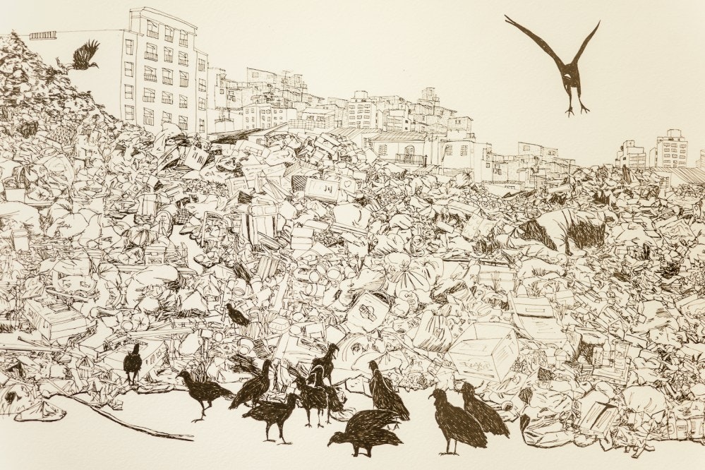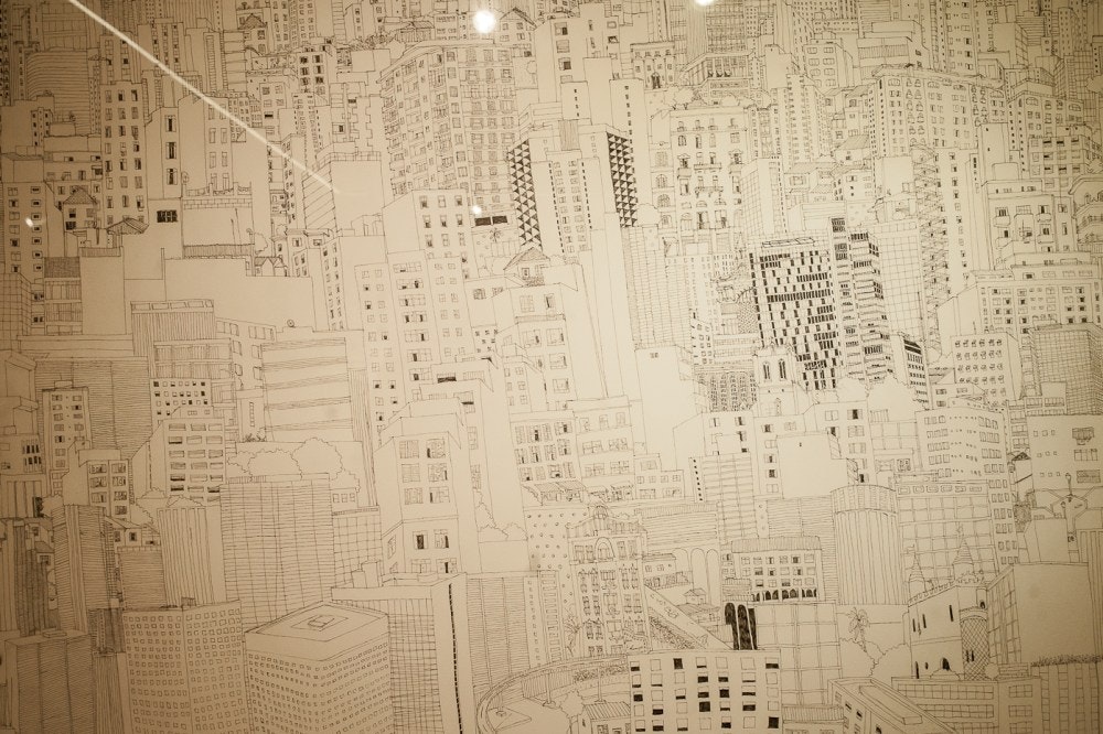 Ao transpor seu caderno de anotações para as paredes da galeria do Epicentro Cultural, a artista Juliana Russo cria o fio condutor de suas anotações e desenhos sobre temas ligados à urbanidade. Reflexões acerca da ocupação urbana e seu impacto aparecem na série de desenhos de moradores de rua entitulada “Retirantes”, em “Cidade Soterrada” e no inédito “Amontoado”, realizado em fina caneta nanquim e inspirado nas edificações da cidade de São Paulo. Com um olhar tanto poético quanto crítico, Juliana retrata São Paulo a partir de seus grafismos.