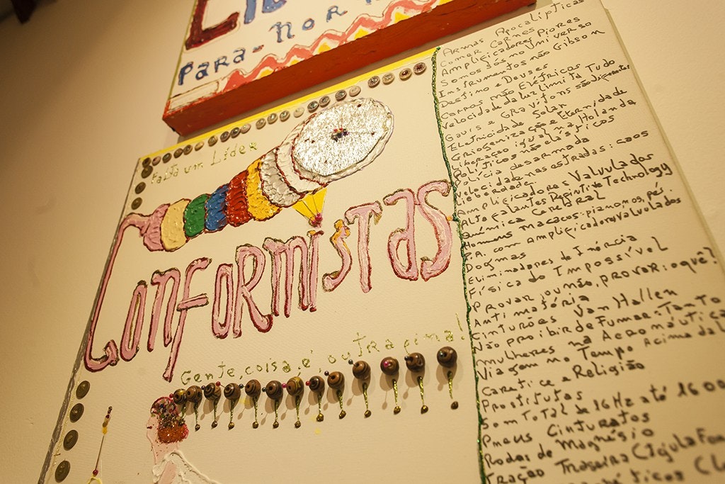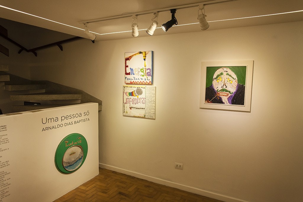 Enquanto artista visual, Arnaldo Dias Baptista se prostra frente ao Universo e esse encontro determina os símbolos que se articulam pelos sentidos em imagens sensíveis. A linguagem híbrida revelada na produção aqui exposta comunica, acima de tudo, a dependência de um sentido em relação a outro: o sincretismo da obra musical com a metáfora visual em favor da utopia – a plenitude perceptiva e renúncia a um sistema isolado de assimilação dos fenômenos. O traquejo nas múltiplas manifestações da linguagem em favor da comunicação maior – numa pessoa só.